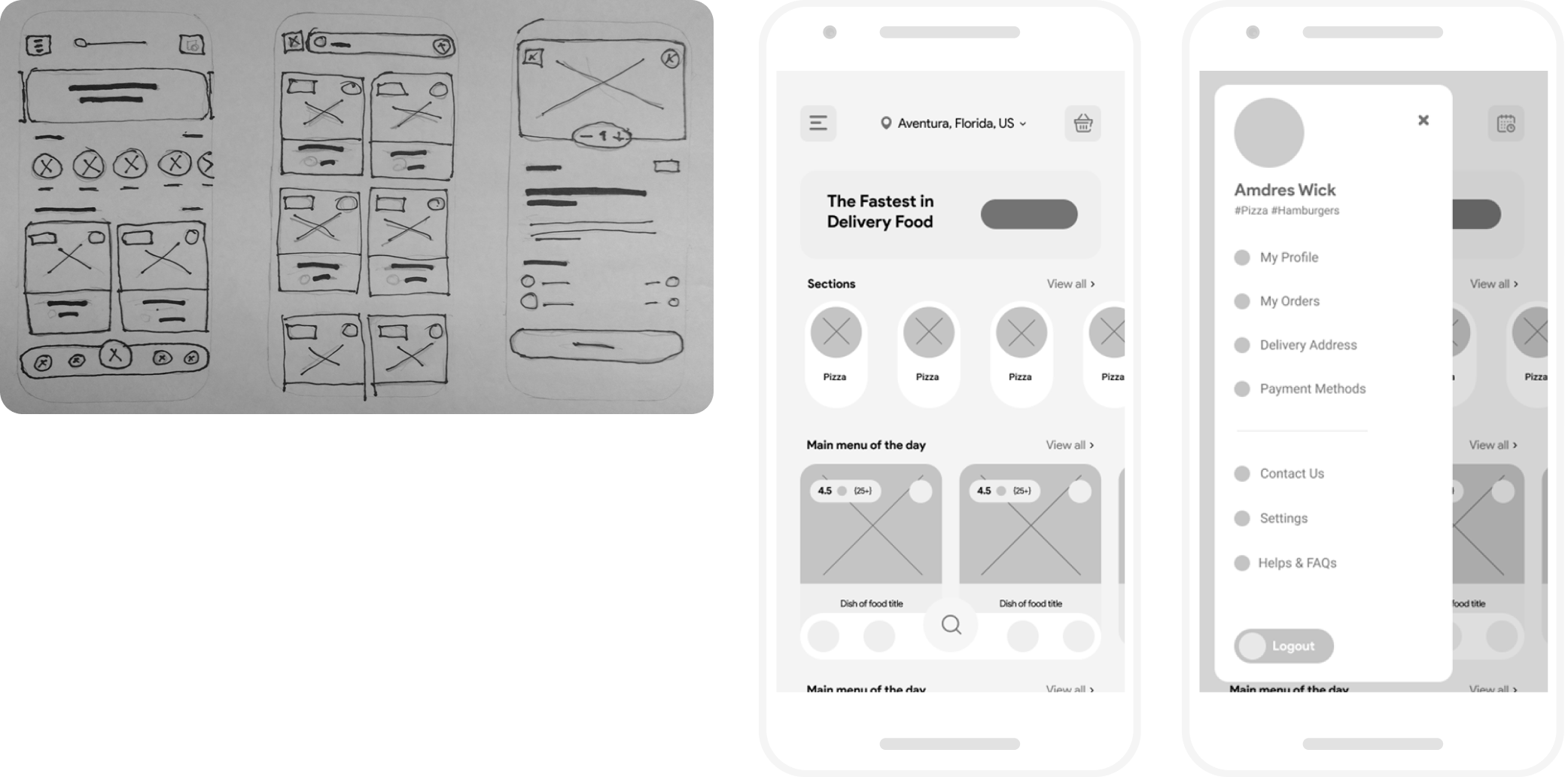 Construí un prototipo de baja fidelidad conectado con los flujos clave: explorar platos, armar pedido, pagar.